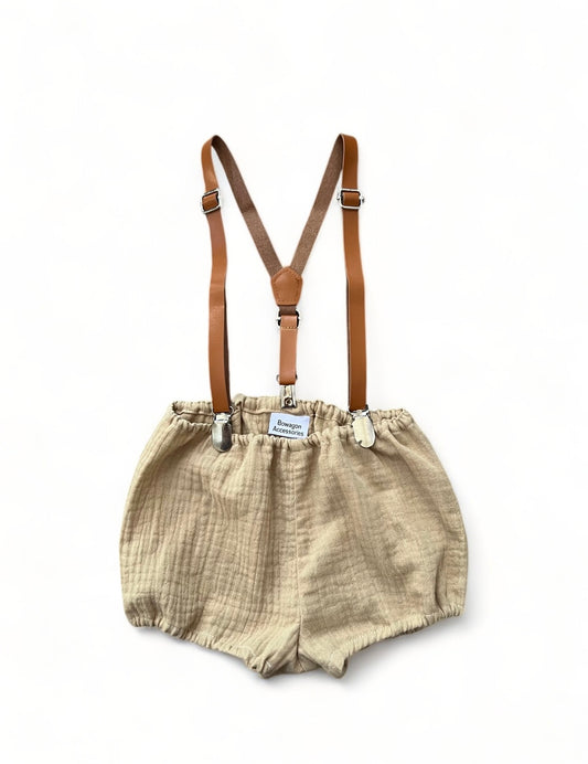 Beige Baby Boy First Birthday Outfit /Cake Smash Outfit / Bloomers Suspenders Bow Tie Outfit