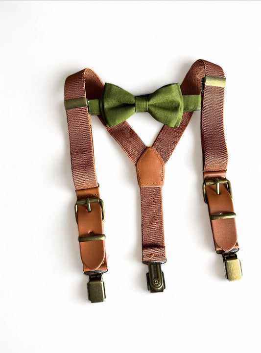 Baby Boy’s Olive Bloomers and Brown Suspenders Birthday Outfit. Olive Green Cake Smash Outfit. Baby Bloomers Suspenders Bow Tie Outfit